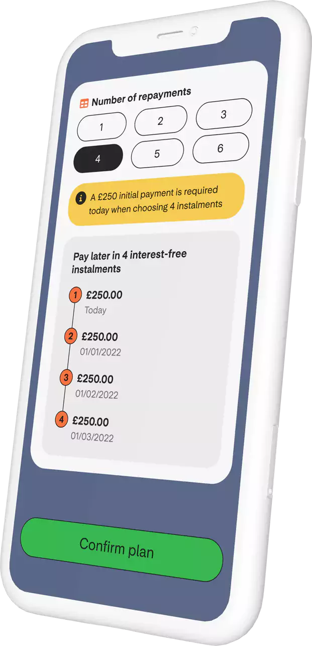 When spreading the cost over 3 or more repayments, pay your first instalment on the day.